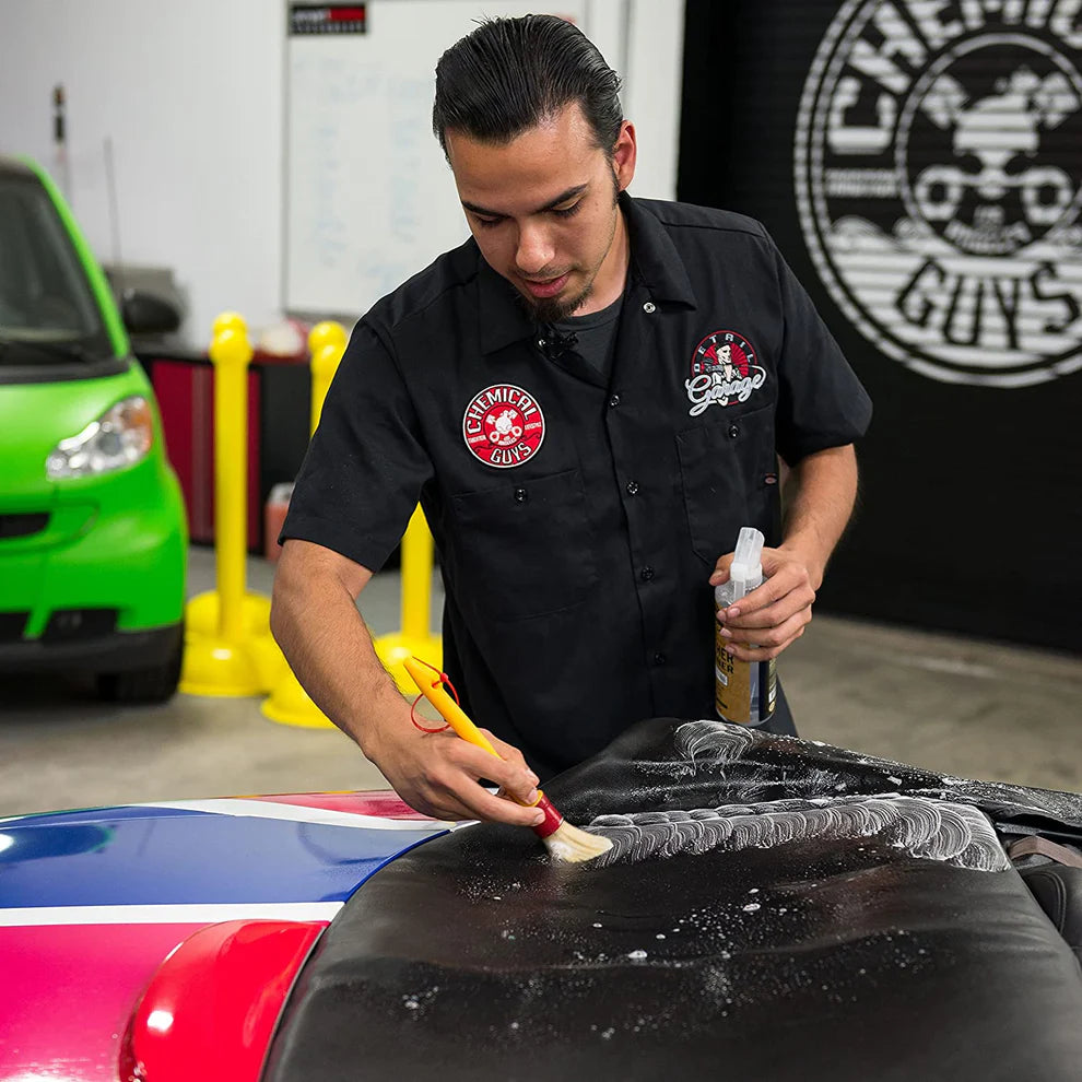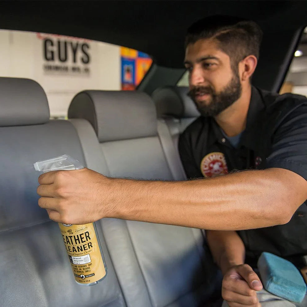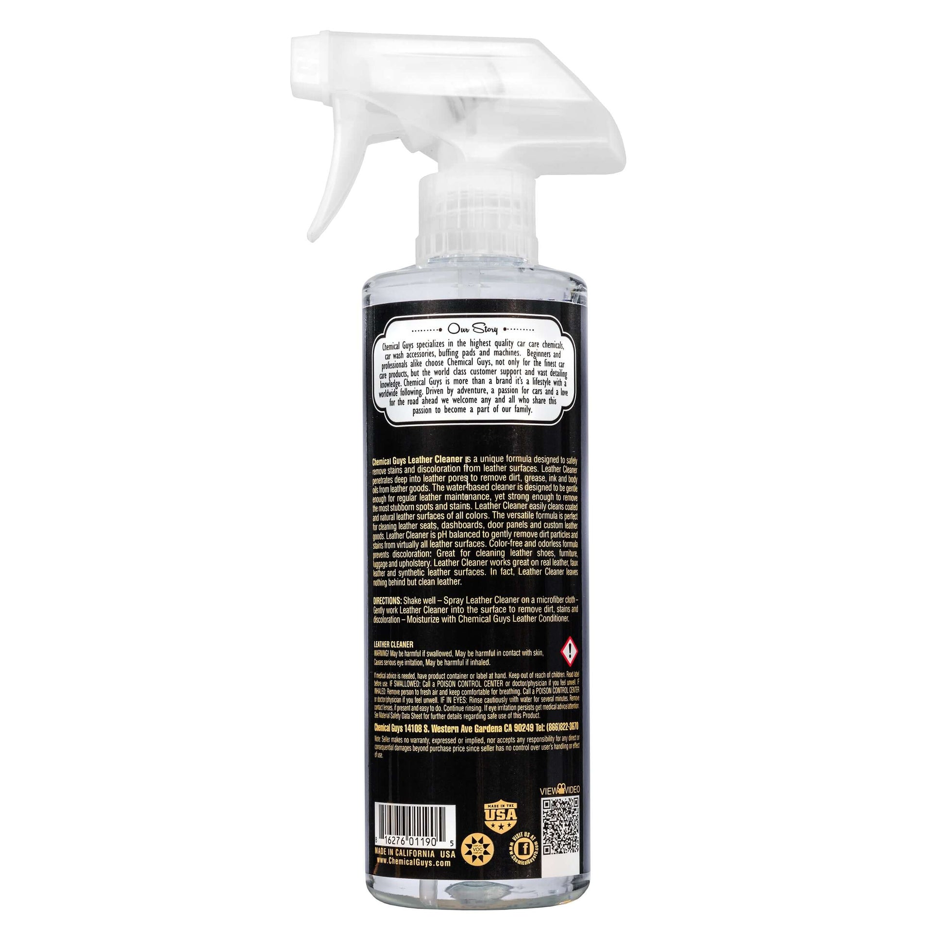 Chemical Guys Leather Cleaner is a colorless and odorless super cleaner designed to safely and effectively remove dirt, oil, sweat, food residue, and light stains from all types of leather. Its gentle yet powerful formula is ideal for use on natural leather, durable sealed leather, and synthetic leather materials.