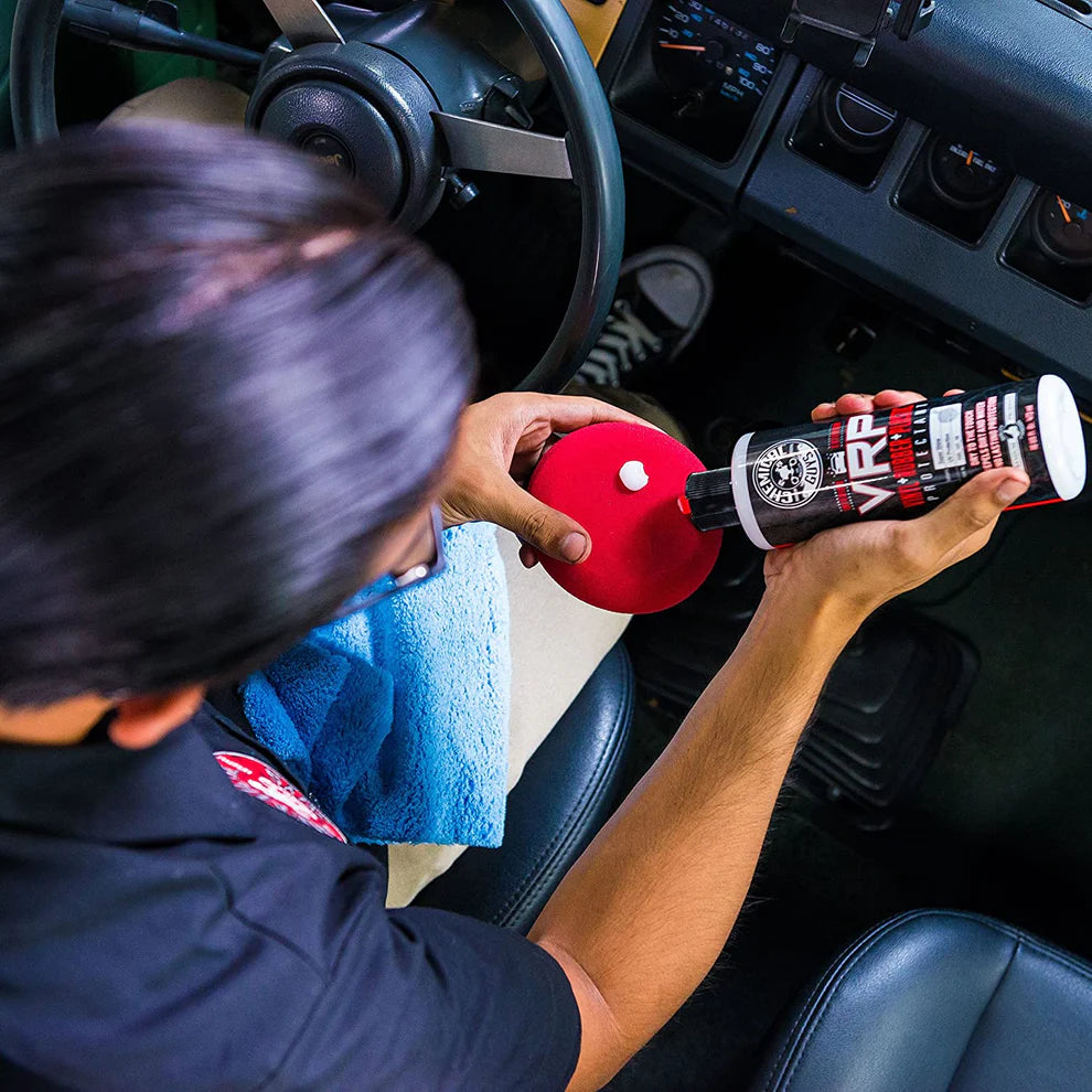 مُصمم بحاجب للأشعة فوق البنفسجية، يُساعد VRP على منع التشقق والبهتان وتغير اللون الناتج عن التعرض لأشعة الشمس. تركيبته المائية آمنة للاستخدام الداخلي والخارجي، مما يجعله حلاً متعدد الاستخدامات لصيانة وحماية أسطح سيارتك.